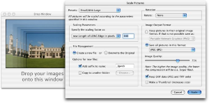 About PictureScaler for MacPictureScaler for Mac is a batch image editor for optimizing digital photos. PictureScaler for Mac offers a flexible approach to resizing and will convert between various image formats, allow you to rotate your pictures (even JPEGs with no degradation), create thumbnail icons and retain digital camera information (EXIF data). Configurable presets can be used to save time and process reproducibly.More Description from Publisher:
