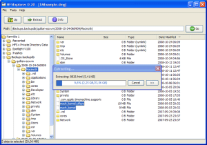 About HFSExplorerHFSExplorer is open source an application that can read Mac-formatted hard disks and disk images. HFSExplorer can read the file systems HFS (Mac OS Standard), HFS+ (Mac OS Extended) and HFSX (Mac OS Extended with case sensitive file names). HFSExplorer allows you to browse your Mac volumes with a graphical file system browser, extract files (copy to hard disk), view detailed information about the volume and create disk images from the volume...More Description from Publisher: